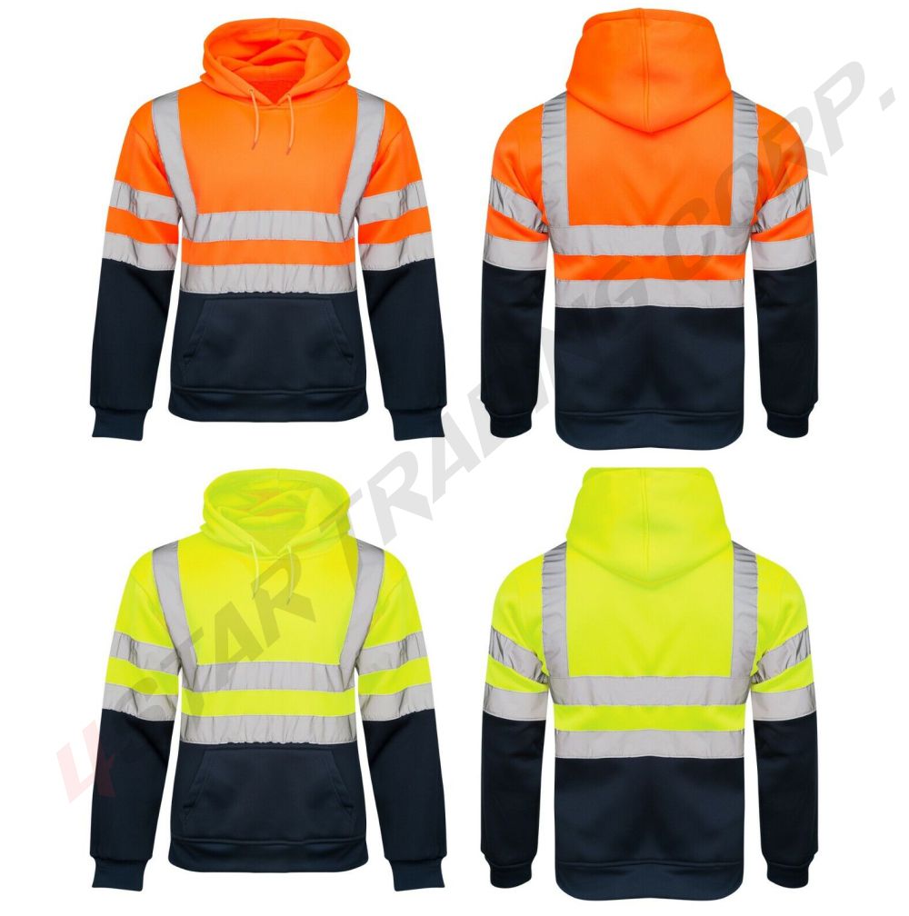 Men’s 2 TONE No zip Hi Vis Sweatshirt Tape Band Pull Over SECURITY Hoodies